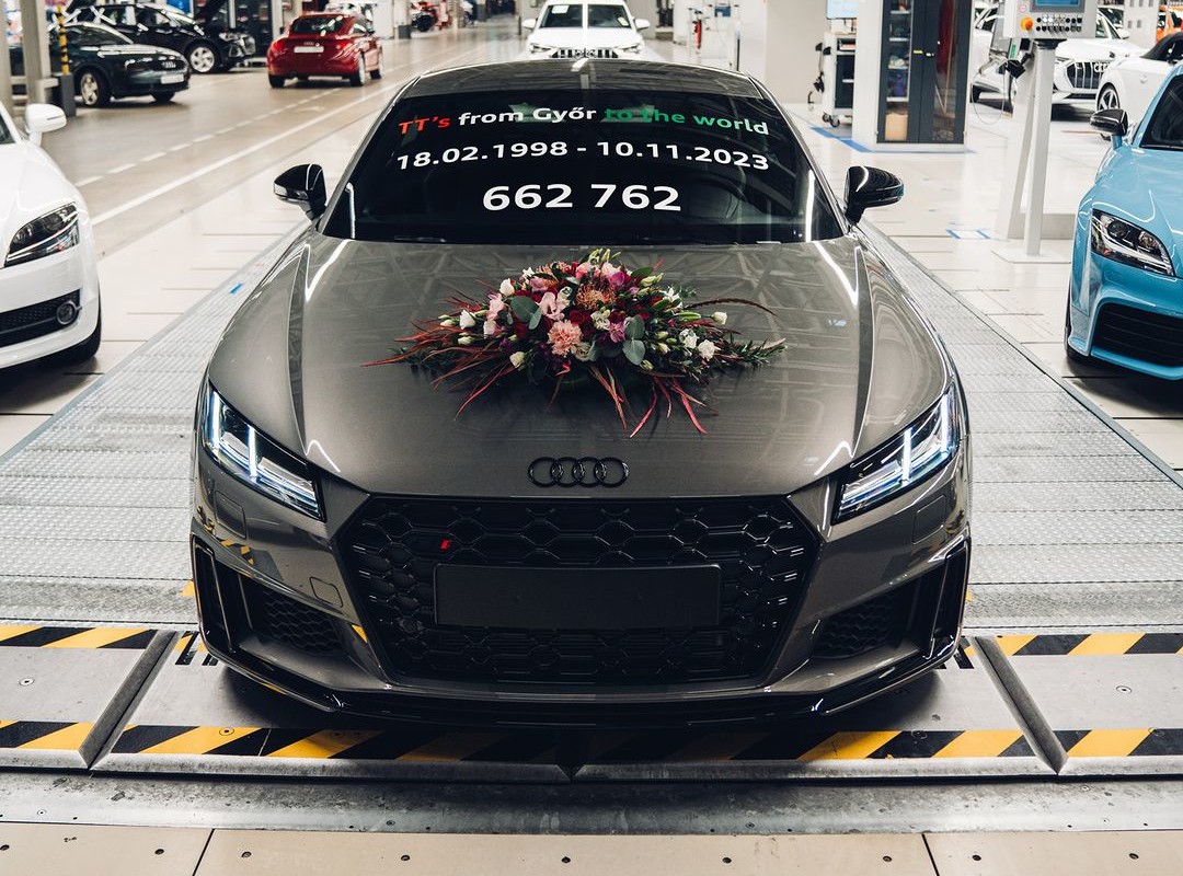 La empresa compartió la foto en sus cuentas de redes sociales. Uno de los últimos Audi TT producidos. En la fábrica de Gyor en Hungría. Desde el 18 de febrero de 1998 hasta el 10 de noviembre de 2023, se construyeron un total de 662.762 ejemplares.