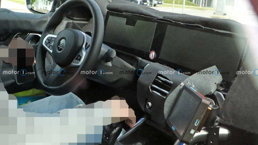 Hablando del habitáculo, notamos claramente que en su interior hay un gran panel, aunque algunas partes están tapadas con unas láminas. Pantalla del grupo de instrumentos y pantalla de infoentretenimiento. Esta es una solución que se encuentra en muchos modelos nuevos del fabricante alemán. El sistema de información y entretenimiento, en particular, está equipado con el sistema operativo iDrive 8, que permite el acceso continuo a servicios digitales avanzados.